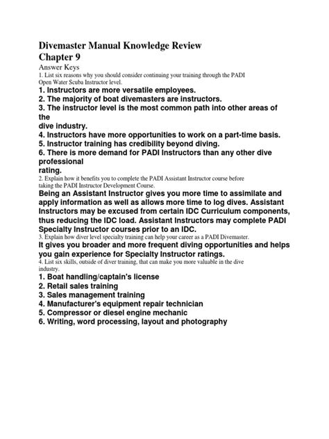 Read Divemaster Manual 2010 Knowledge Review Answer Key rtf